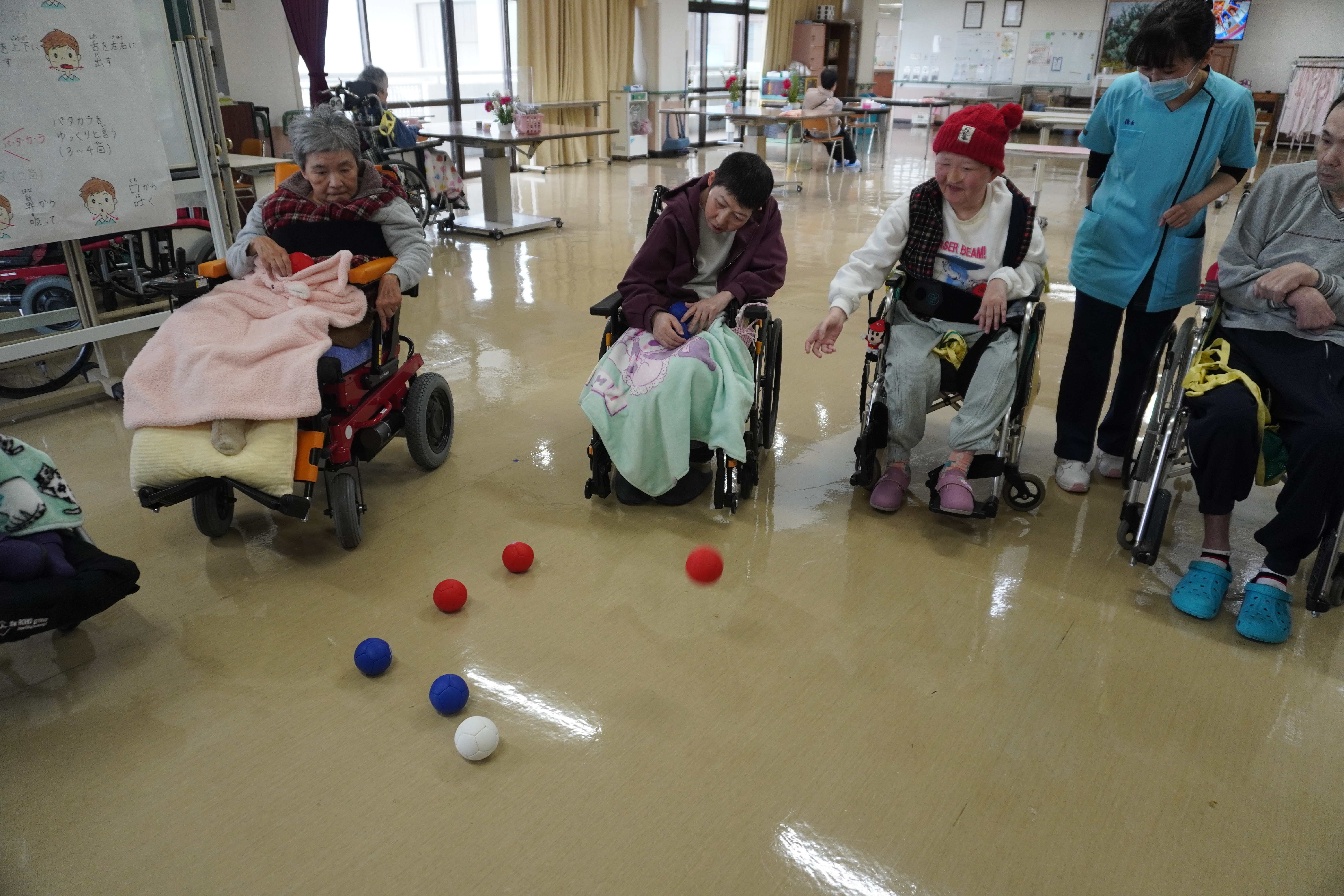 今日(きょう)は、日中活動(にっちゅうかつどう)で、ボッチャをしました!